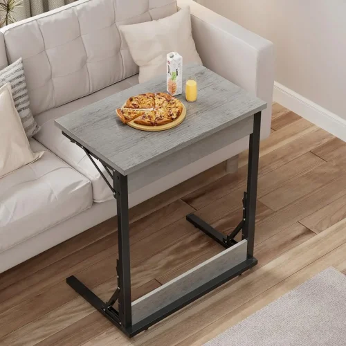 • 24" Wide Folding C-Shaped End Table, Small Side Desk for Couch, Sofa TV Tray Table with Metal Frame for Living Room, Bedroom