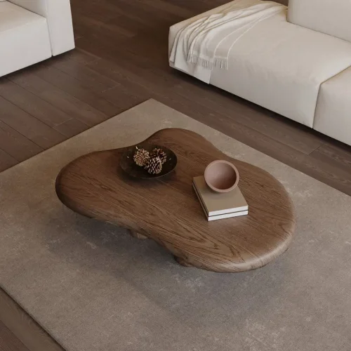 • New European Style Living Room Furniture Irregular Coffee Table Brown Solid Wood Creative Cloud Coffee Table