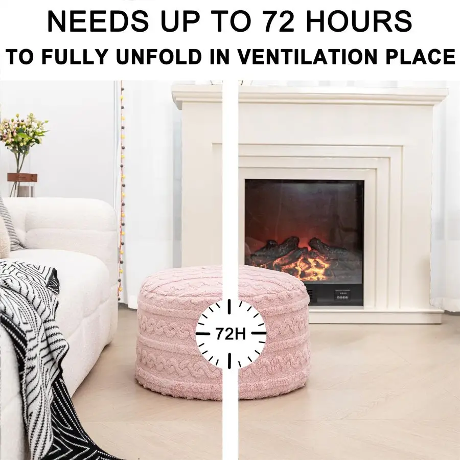 No Assembly RequiredThis pouf ottoman comes ready to useno assembly needed.It39s vacuumpacked for convenience.Simply remove it from the packaging and allow it to fully expand for up to 72 hours.If any wrinkles remain,use a garment steamer to smooth them out.For optimal and longlasting support,allow the product to fully expand about 7 days.