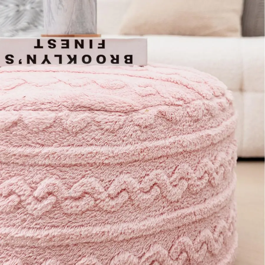Soft Plush Fiber Pouf OttomanCrafted from premium plush fiber for ultimate comfort,features an antislip bottom for stability and reinforced stitching for durability.The thickened zipper ensures smooth operation.Perfect as a footrest,seat,or stylish accent.